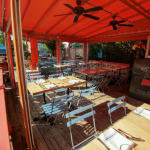 Located in the Cape May Ferry Terminal. Festive atmosphere on the water.